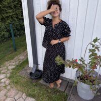 Kes ei armastaks täppe! Hea langevusega ja hingavast viskoosist pluus on eest nööbitav ja lühikeste varrukatega. Mugavust lisab elastikkumm varrukate otstes.