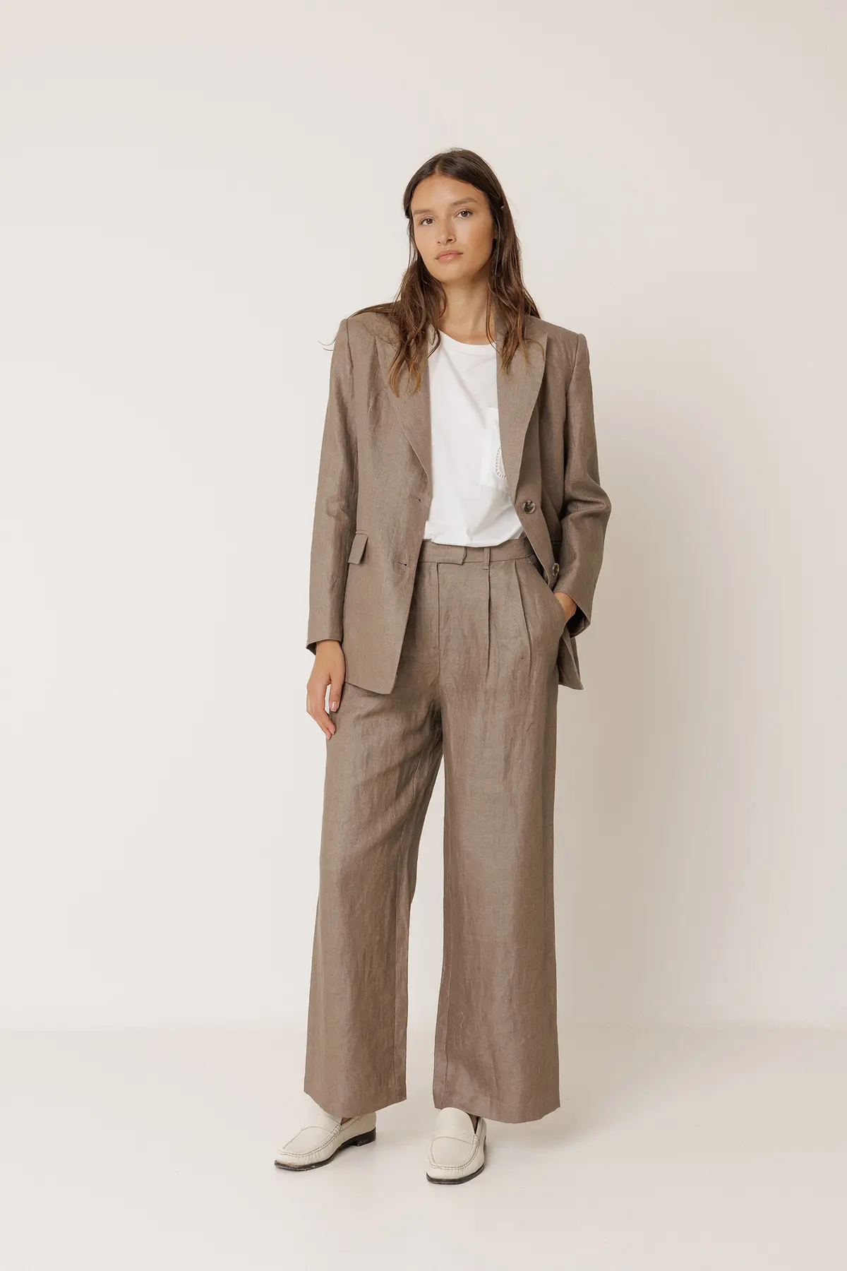 LINEN PLEATED TROUSERS