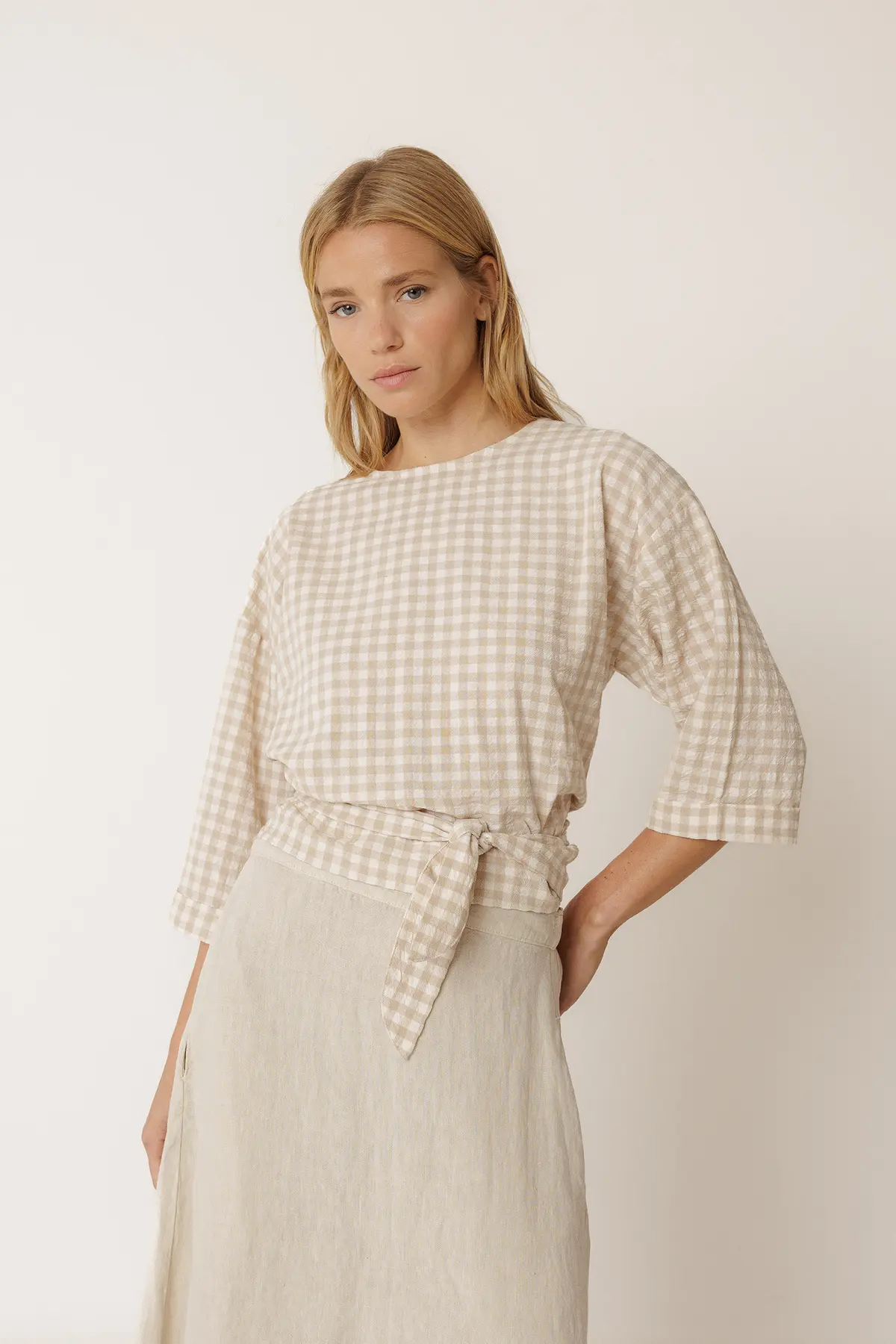 Kergelt langeva õlajoonega 3/4 varrukatega seotav pluus, mida saab kanda mitut erinevat moodi. Materjal on imepehme ja mugav.