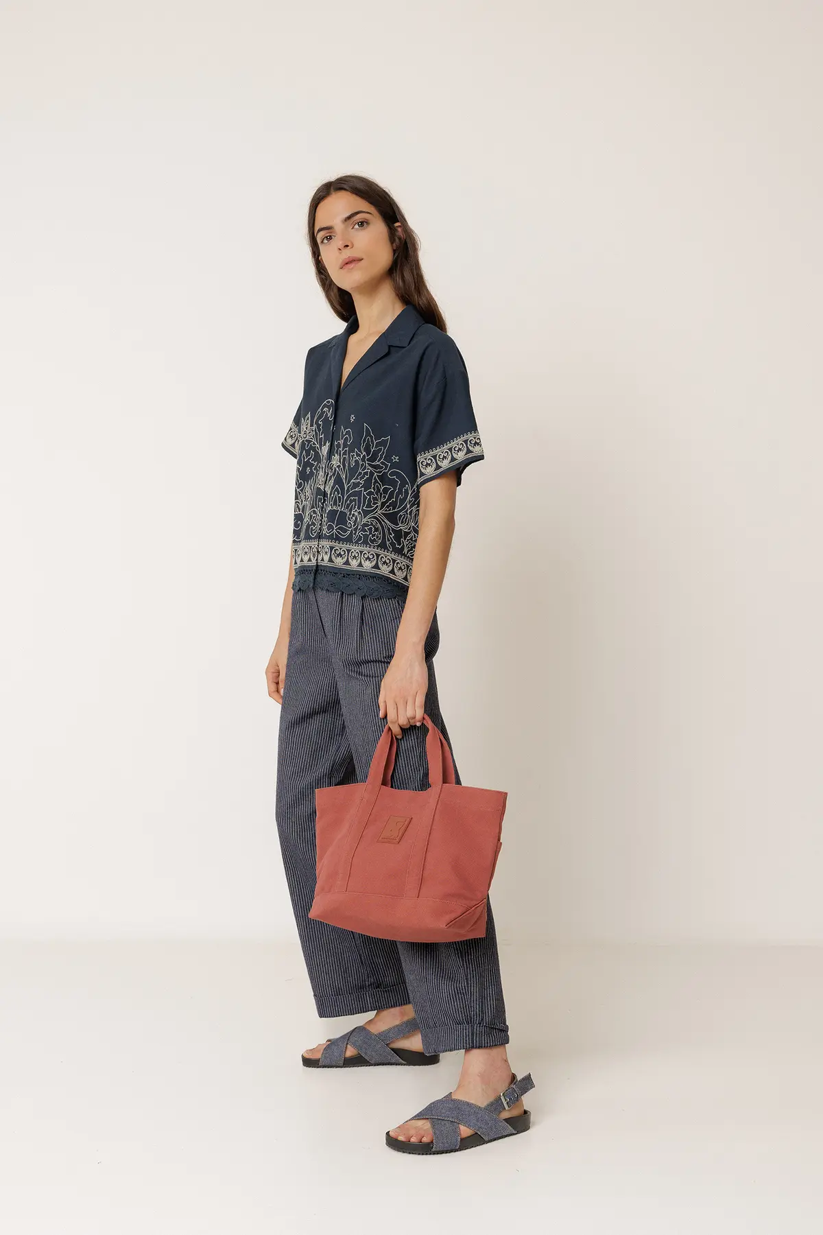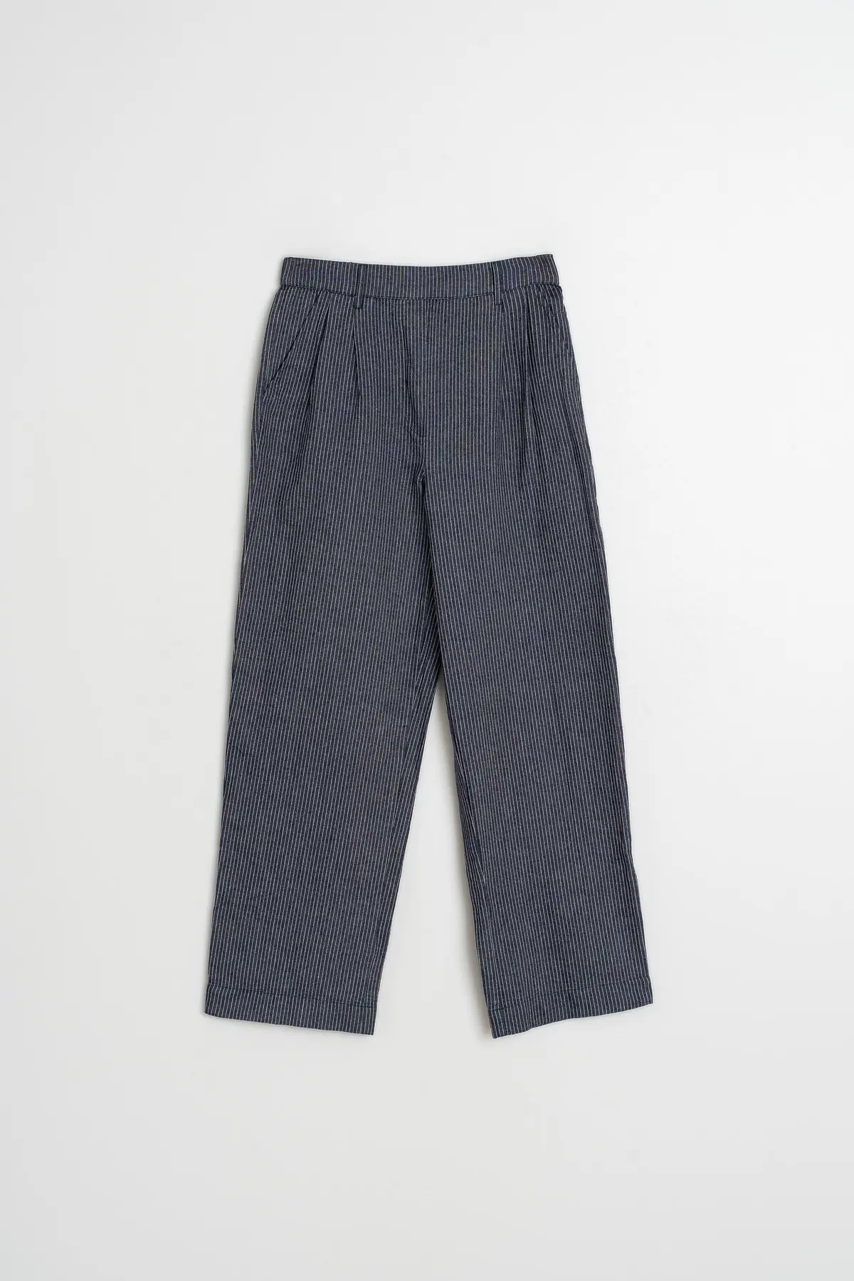 Väga hea istuvusega orgaanilisest puuvillast mugavad püksid, mis teevad visuaalselt sihvakamaks. Pükstel on mugavuse suurendamiseks selja taga kummivärvel ja ilus kõrge vööosa. Ideaalne kandmiseks koos samast kangast pluusiga.