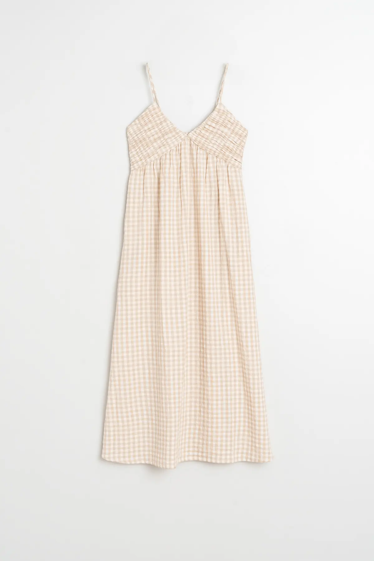 Taskute ja õlapaeltega super mugav kleit. Kleidil on kaunis A-lõige ja selja peal kinnis mugavamaks selga panekuks. Ideaalne materjal ka palava ilmaga kandmiseks.
